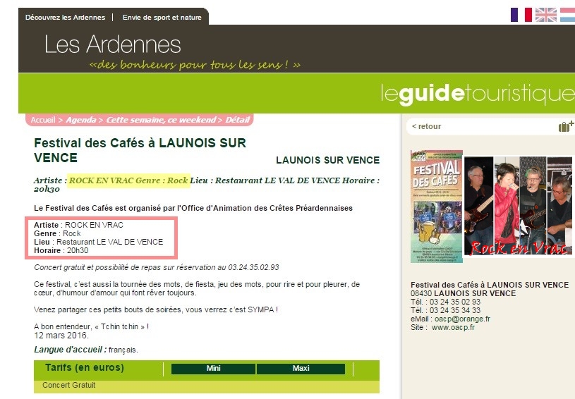 Festival des cafés : concert au Relais des Ardennes à Novion Porcien (avril 2017)